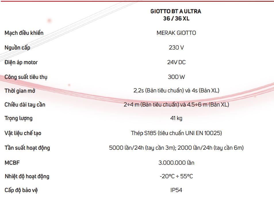 - Model Giotto BT A Ultra 36 XL tay cần dài 6m